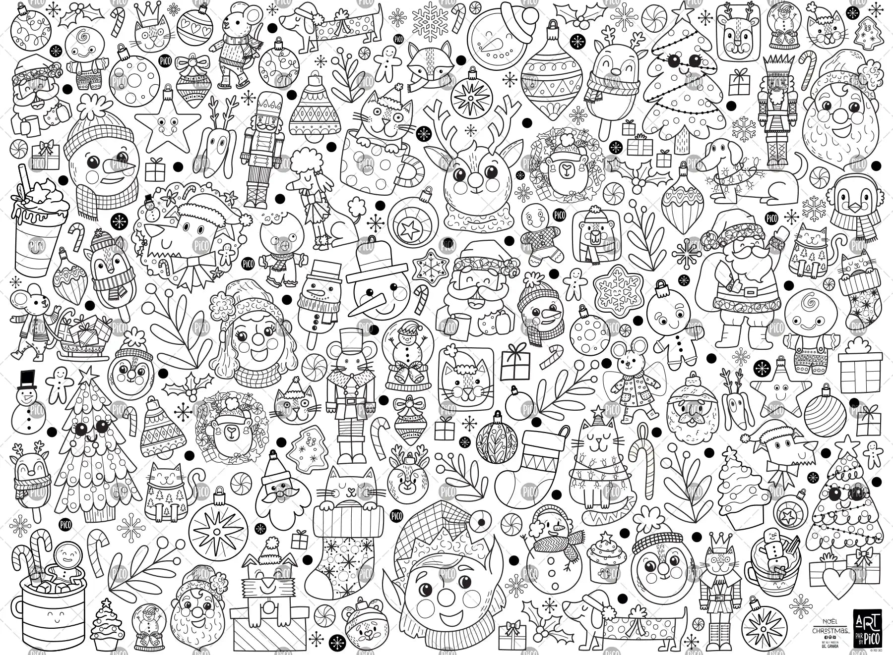 The Giant Christmas Poster is a large-format coloring page filled with details like holiday animals, Christmas decorations, Christmas characters, and treats. This poster will appeal to young and old alike, and is perfect for decorating your home or classroom. It will also make a beautiful tablecloth or photo backdrop for your Christmas Eve party. You can complement your purchase with the Hot Chocolate or Christmas Tree tattoos for even more festivities.